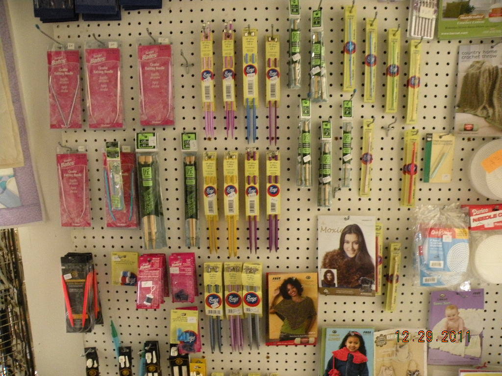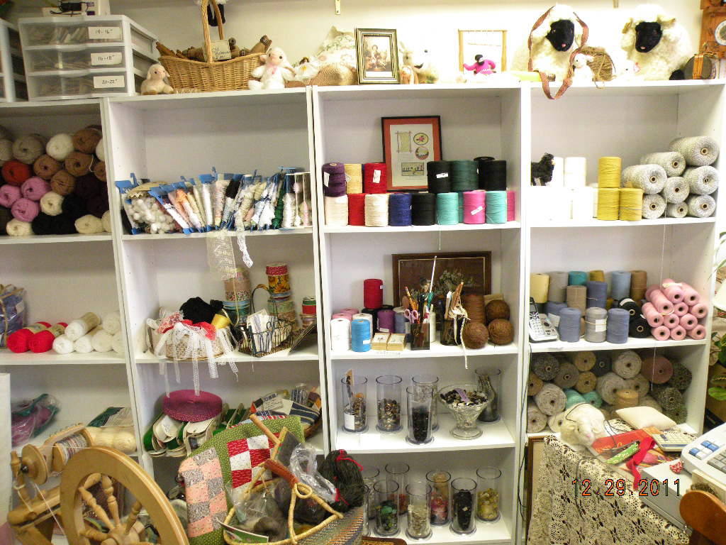Our retail store offers a selection of supplies for knitters and crocheters | | yarns and threads, laces, trims, zippers | | DMC floss |
